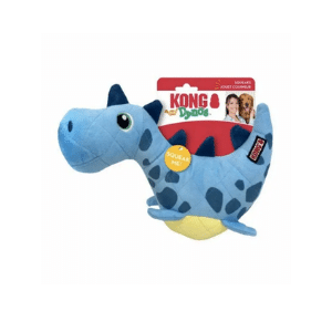 KONG® Dynos Roars to oryginalna zabawka dla psa w kształcie sympatycznego, niebieskiego dinozaura. Zaprojektowana została z myślą o pupilach, które uwielbiają miękkie pluszaki, ale potrzebują czegoś bardziej wytrzymałego niż standardowe zabawki materiałowe. Solidna konstrukcja oraz połączenie różnych faktur sprawiają, że zabawka jest nie tylko trwała, ale również niezwykle interesująca dla psa.